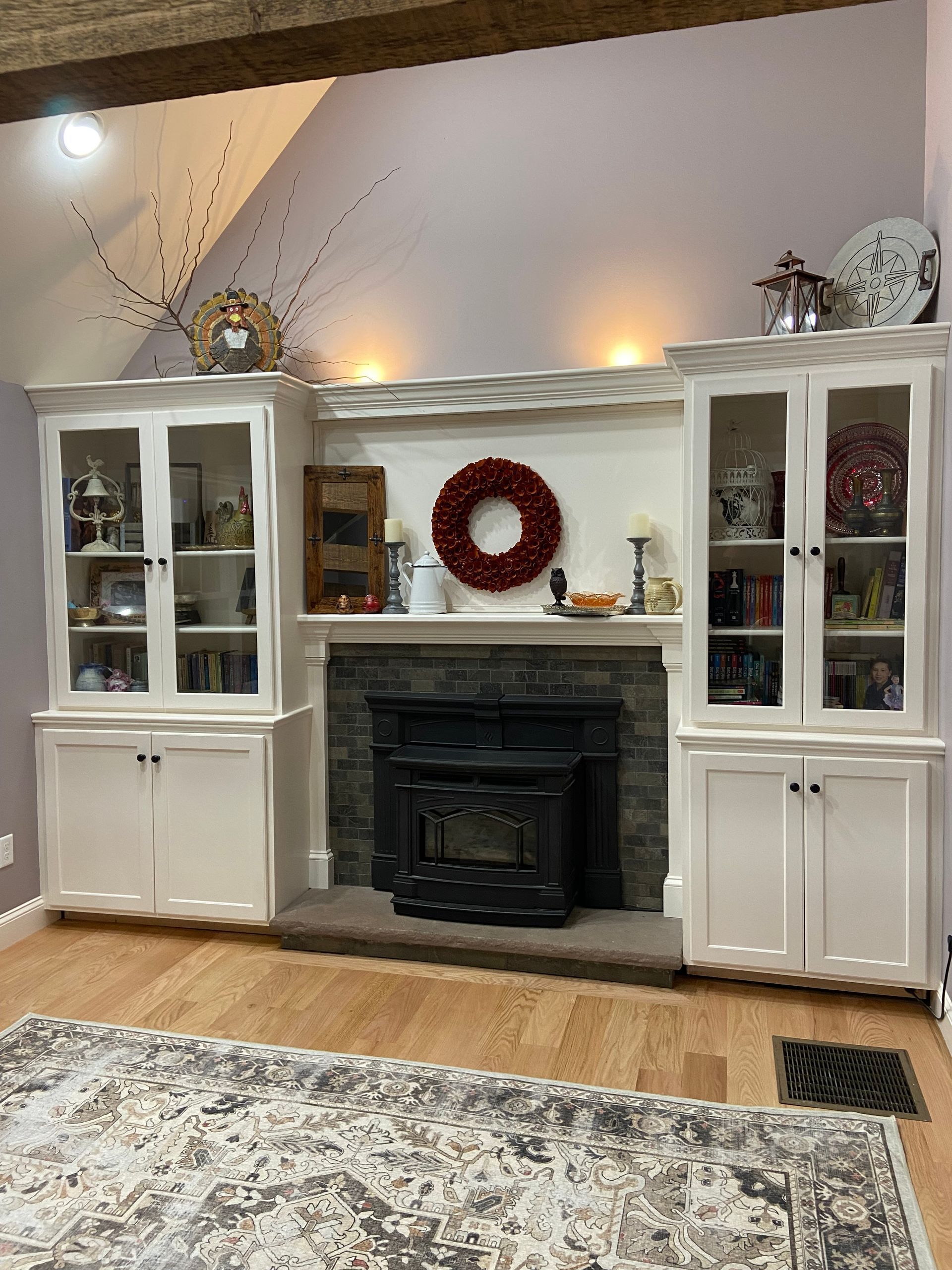 We will help you design and build your built in, and we provide finish carpentry services, such as hard wood stairs, crown molding and other.